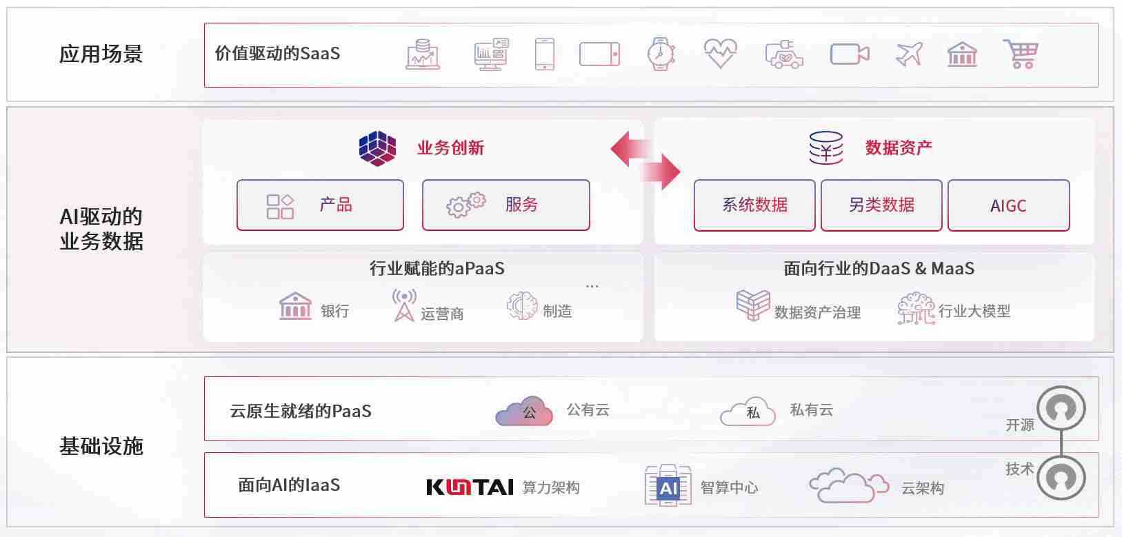 数字时代,,,围绕企业数字化转型的关键要素,,,,Z6尊龙数码开创性的提出数云融合战略和技术体系框架,,着力在云原生、、、数字原生、、、、AI原生和信创产业上架构产品和服务能力,,,为处在不同数字化转型阶段的快消零售、、、汽车、、、金融、、医疗、、政企、、、、教育、、、、运营商等行业客户提供泛在的敏捷IT能力和融合的数据驱动能力,,,,构建跨界融合创新的数字业务场景和新业务模式,,,,助力企业级客户建立面向未来的核心能力和竞争优势,,,,全面推动社会的数字化、、智能化转型升级。。